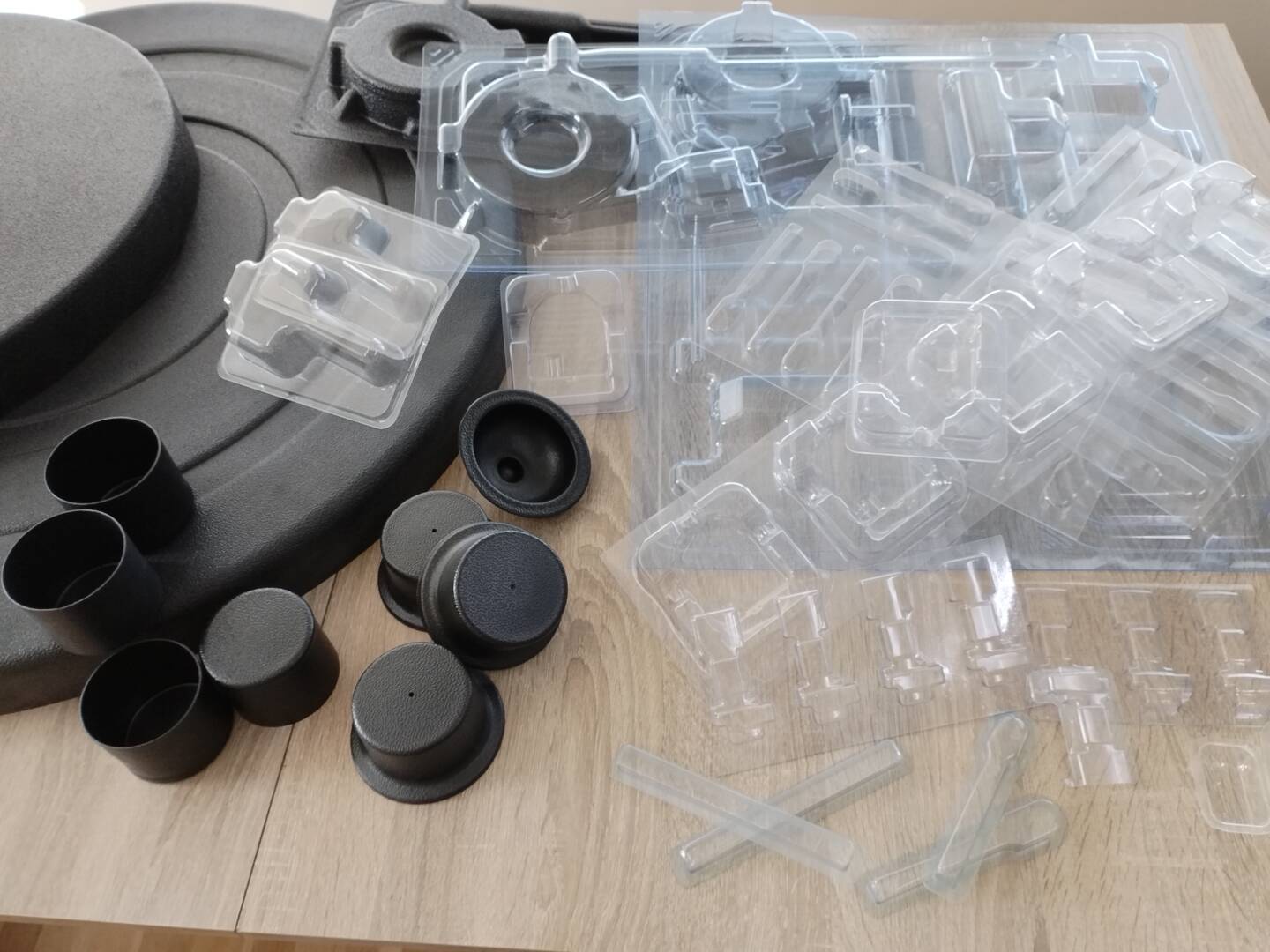От листов материал ( PET, PET G, PS, PP, PVC ) с дебелина от 250 µm до 4000 µm се произвеждат изделия с произволна конфигурация.